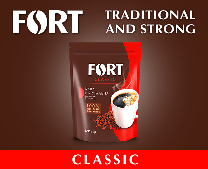 For over 20 years, FORT coffee has been available on the Ukrainian market. Commitment to traditions and time-tested recipes help the brand delight its consumers year after year with the consistently high quality of their favorite coffee.